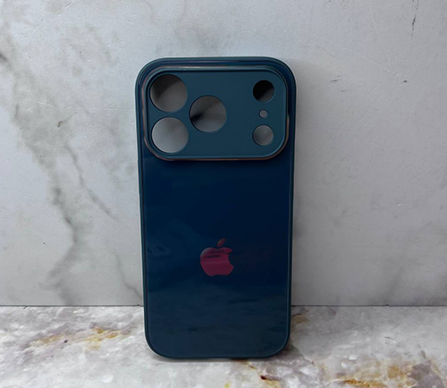 Задняя крышка Iphone X стеклянная, силиконовый борт, с логотипом, цвет №2, темно-синяя
