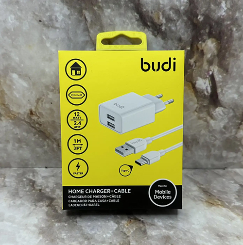 Блок питания Budi 2 USB, 12W 2.4A, кабель USB для Type-C, 1M, (AC356ETW) белый
