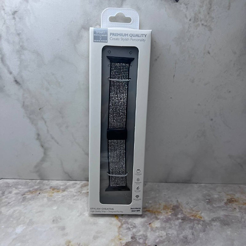 Ремешок Apple Watch 42mm-44mm-45mm-49mm PREMIUM QUALITY тканевый со стразами, черный