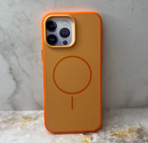 Задняя крышка Iphone 11 матовая с MagSafe, металлические кнопки, в тех.паке., оранжевая