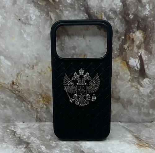 Задняя крышка Iphone 11 под кожу плетеный, с Гербом, силиконоый борт, в тех. паке, черная