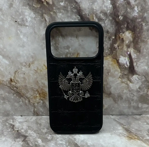 Задняя крышка Iphone 11 под кожу рептилии, с Гербом, силиконоый борт, в тех. паке, черная