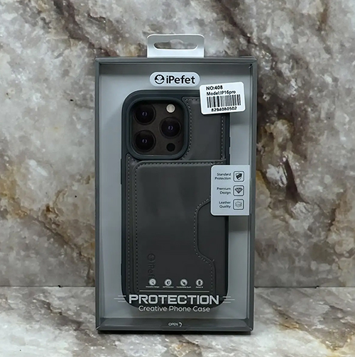 Задняя крышка Iphone 11 iPefet под кожу с одним отделением для карт, силиконовый борт, в коробке, черная