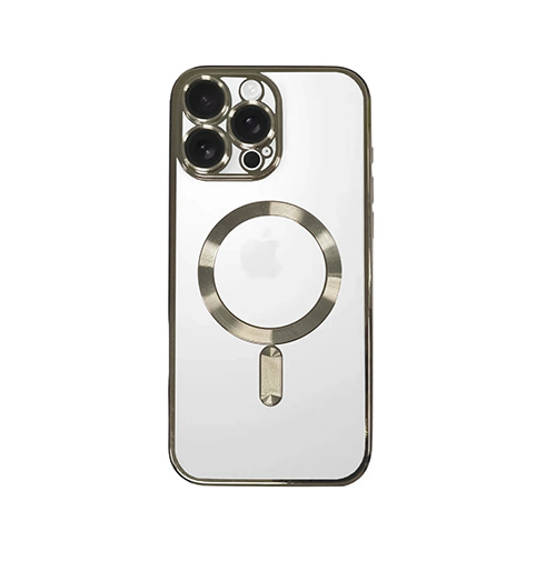 Силиконовый чехол Iphone 12 прозрачный в сеточку, с защитой камеры, magsafe, глянцевый борт, в блистере, золото