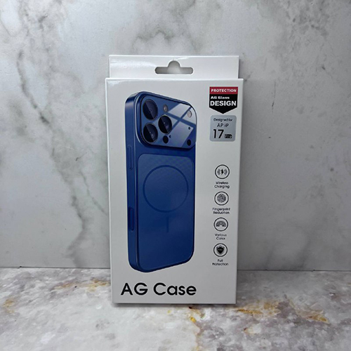 Задняя крышка AG GLASS Iphone 12 Pro Max матовая с глянцевой защитой камеры, с MagSafe, в коробке, синяя