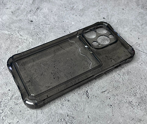 Силиконовй чехол Iphone 13 Pro Max ярко-прозрачный в сеточку, с визитницей, с антишок углами, черный
