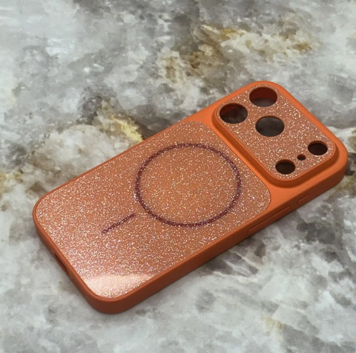 Задняя крышка AG Glass Iphone 13 матовая с блестками, глянцевой защитой камеры, с MagSafe, в коробке, оранжевая