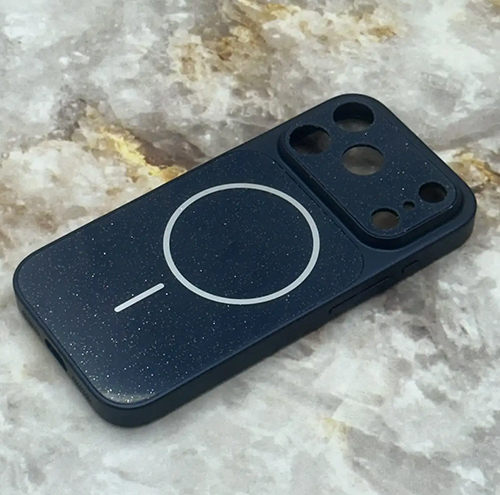 Задняя крышка AG Glass Iphone 13 матовая с блестками, глянцевой защитой камеры, с MagSafe, в коробке, синяя