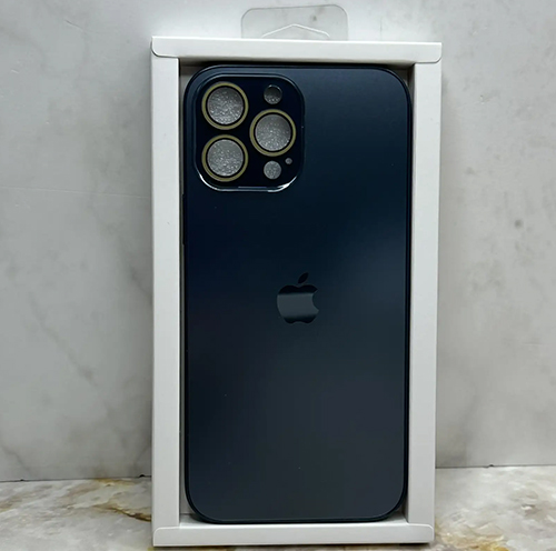 Задняя крышка Iphone 13 Pro Max стеклянная, силиконовый борт, окантовка камеры и защитой, с лого, белая