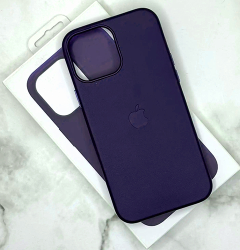 Задняя крышка Iphone 13 Pro Max (6.7) Leather Case MagSafe под кожу, с логотипом, чернично-серая