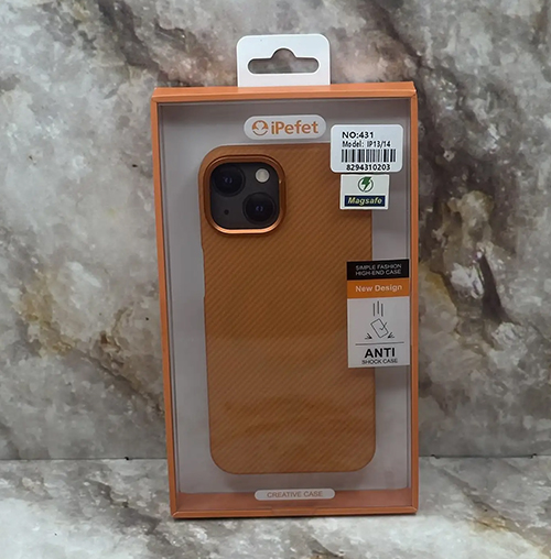 Задняя крышка Iphone 13 Pro iPefet под карбон с MagSafe, металл. окантовка камеры, в коробке, оранжевая 8294310203