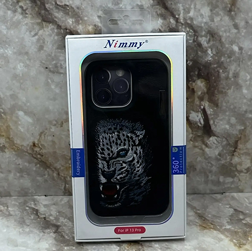 Задняя крышка Nimmy Iphone 13 Pro под кожу, с вышивкой, снежный барс, черная