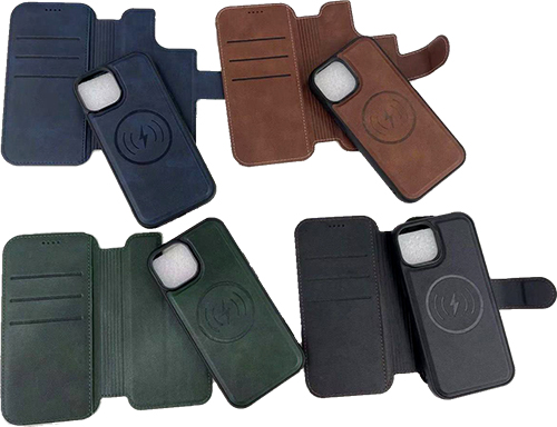 Чехол-книга Iphone 13/14 UNIQUE CASE под кожу 2в1 с MagSafe и отделением для карт, черная