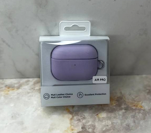 Чехол для Air Pods PRO PREMIUM LEATHER CASE под кожу с карабином, сиреневый