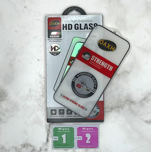 Защитное стекло OAXH HD GLASS для Iphone 14 Pro полный клей в упаковке, черное