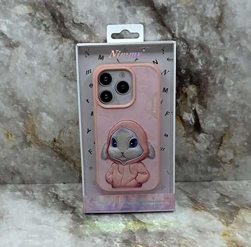 Задняя крышка Nimmy Iphone 14 Pro матовая, с вышивкой, зайка в капюшоне, розовая