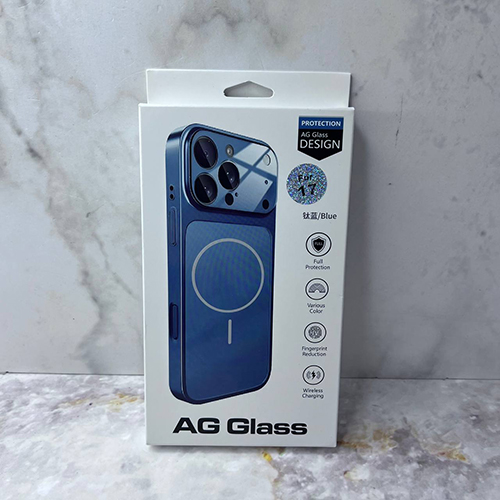 Задняя крышка AG GLASS Iphone 14 Pro Max матовая с глянцевой защитой камеры, с MagSafe, в коробке, Blue