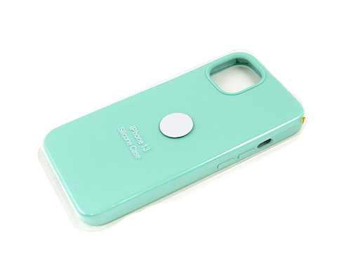 Силиконовый чехол Iphone 14 Plus "SILICONE CASE A" с логотипом, без защиты камеры, в блистере, мятный