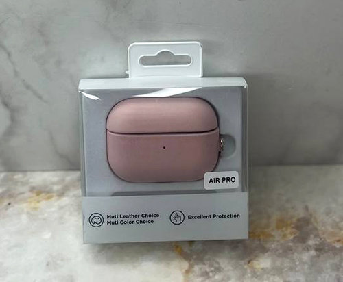 Чехол для Air Pods PRO 2 PREMIUM LEATHER CASE под кожу с карабином, розовый