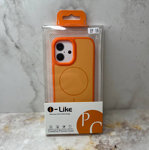 Задняя крышка Iphone 15 i-Like матовая с MagSafe, силиконовый борт, оранжевая