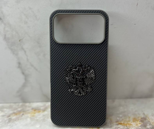 Задняя крышка Iphone 15 силиконовый борт, под карбон Герб РФ, в тех.паке., черная