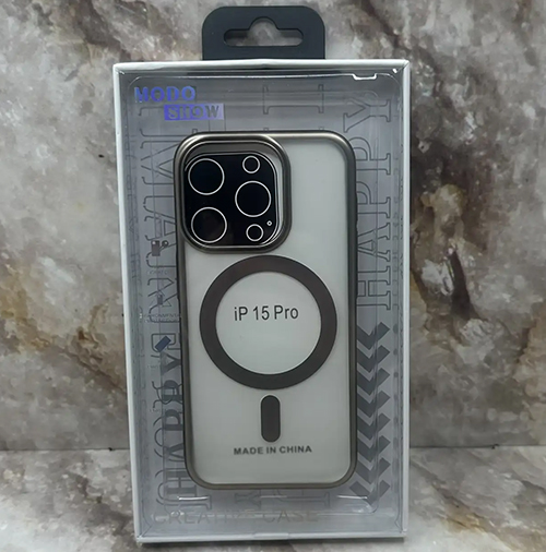 Задняя крышка Iphone 15 MODO SHOW матово-прозрачная, с MagSafe, цветная оконтовка камеры, титановая