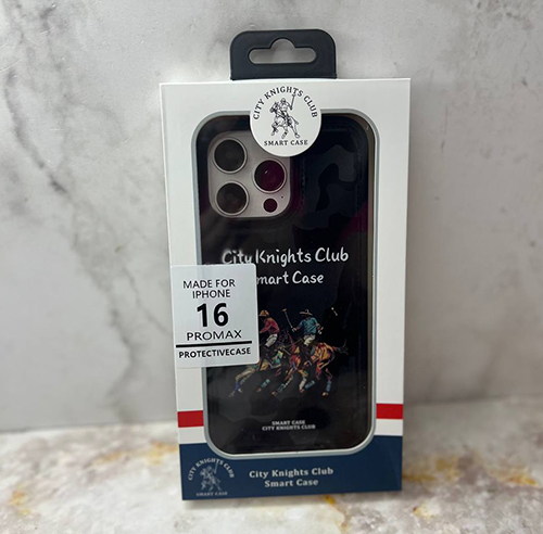 Задняя крышка Iphone 15 Pro Max City Knights Club, под кожу, в коробке, всадник на лошади, черная