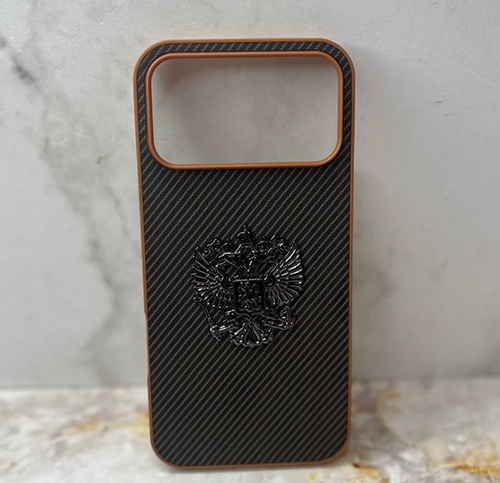 Задняя крышка Iphone 15 Pro Max силиконовый борт, под карбон Герб РФ, в тех.паке., коричневая