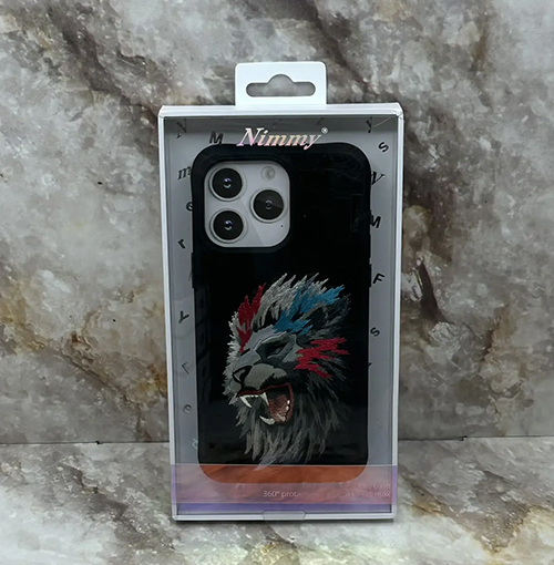 Задняя крышка Nimmy Iphone 15 Pro Max под кожу, с вышивкой, голова льва, черная