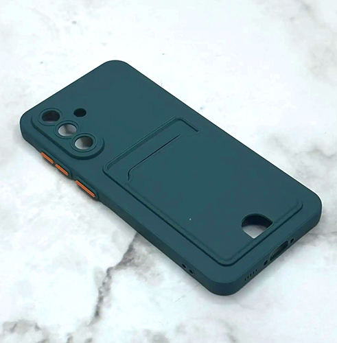 Силиконовый чехол Iphone 15 Pro матовый soft-touch, цветные кнопки, с визитницей, темно-зеленый