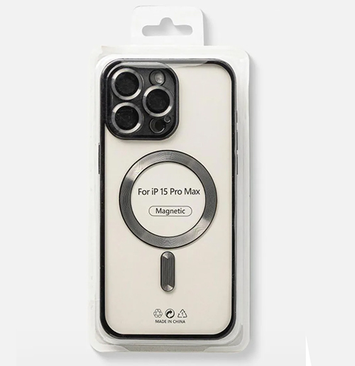 Силиконовый чехол Samsung Galaxy S24 прозрачный в сеточку, с защитой камеры, magsafe, глянцевый борт, в блистере, черный