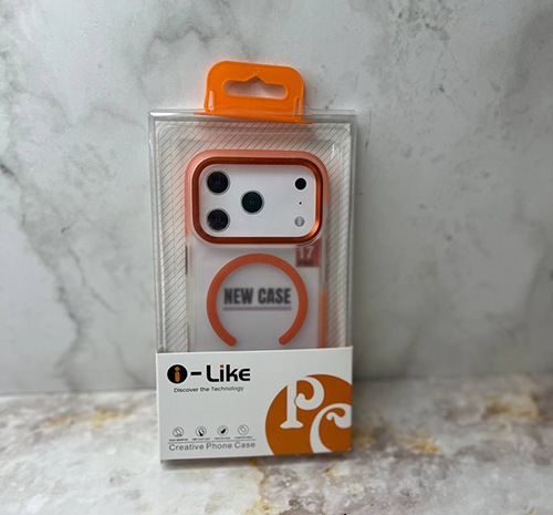 Задняя крышка Iphone 16 i-Like матово-прозрачная, с MagSafe, металлическая оконтовка камеры, оранжевая