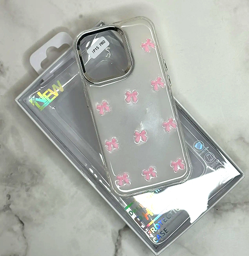 Задняя крышка Iphone 16 глянцевая блестящая, с накладными фигурками, розовые банты