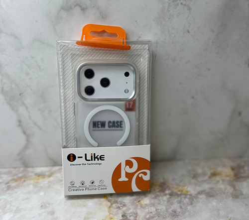 Задняя крышка Iphone 16 Pro i-Like матово-прозрачная, с MagSafe, металлическая оконтовка камеры, белая