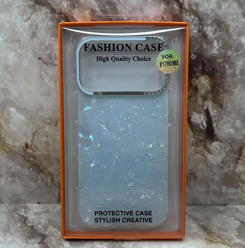 Задняя крышка Iphone 16 Pro FASHION CASE под мрамор, металл. окантовка камеры со стразами, белая