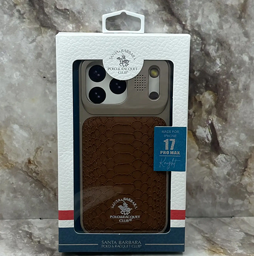 Задняя крышка Iphone 16 Pro SB Polo Racquet Club, (Бампер) под кожу рептилии, бархат внутри, в коробке, коричневая