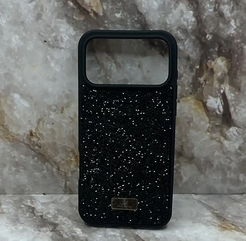 Задняя крышка "SW" Iphone 16 Pro поверхность из страз, силиконовый борт и окантовка камеры, в тех.паке, черная