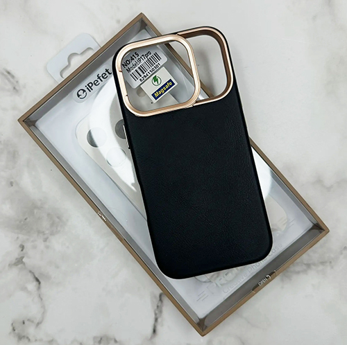 Задняя крышка iPefet Iphone 16 Pro под кожу с Magsafe, камера подставка, бархат внутри, металл. кнопки, черная