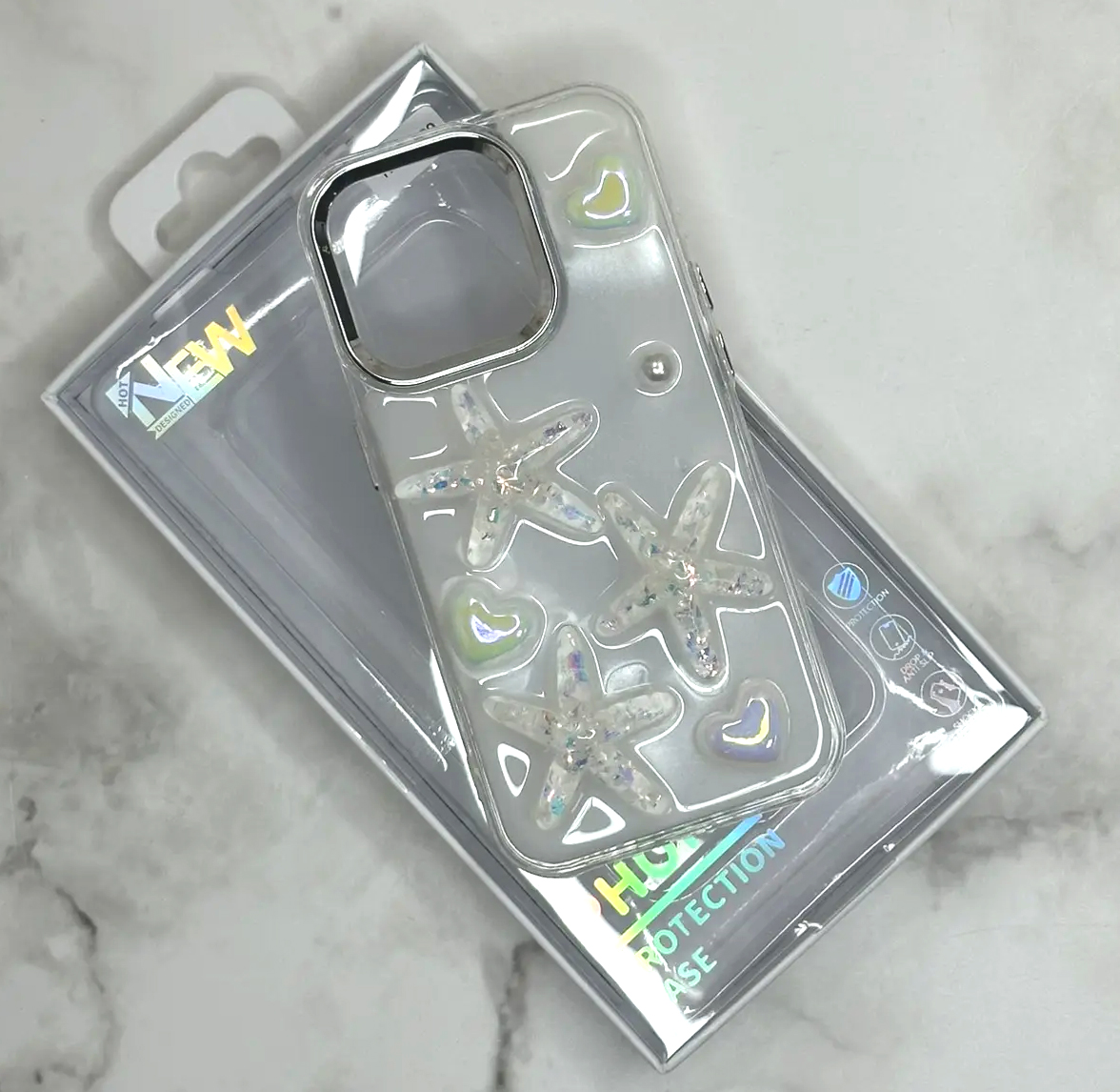 Задняя крышка Iphone 16 Pro глянцевая блестящая, с накладными фигурками, морские звезды