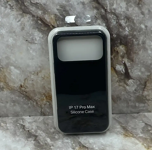 Силиконовый чехол Iphone 16 Pro Max silicone case, бархат внутри, без логотипа, в блистере, черный
