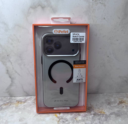 Задняя крышка iPefet Iphone 16 Pro Max пластиковая, прозрачная с MagSafe в коробке, черная