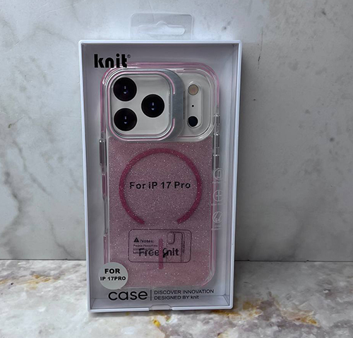 Задняя крышка Iphone 16 Pro Max KNIT камера-подставка, прозрачная с блестками и MagSafe, розовая