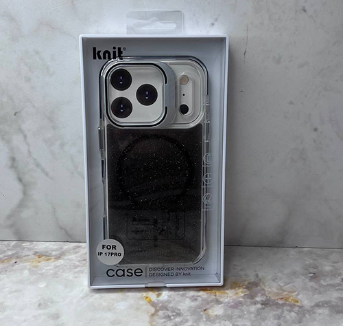 Задняя крышка Iphone 16 Pro Max KNIT камера-подставка, прозрачная с блестками и MagSafe, черная