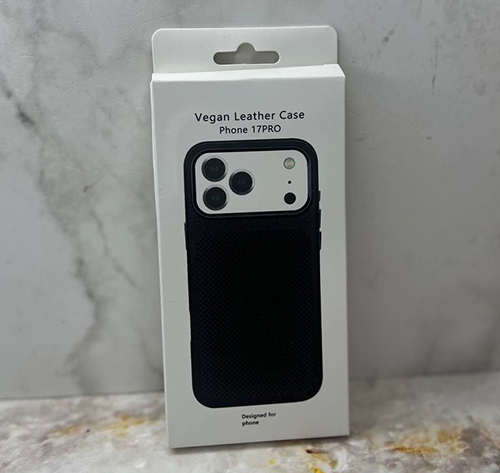 Задняя крышка Vegan Leather Case Iphone 16 Pro Max под кожу со вставкой под карбон, с MagSafe, черная
