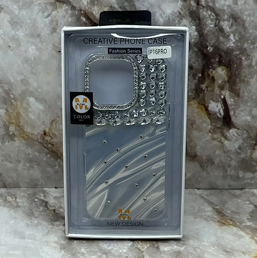 Задняя крышка MY COLOR Iphone 16 Pro Max перламутровая со стразами, в коробке, серебристая