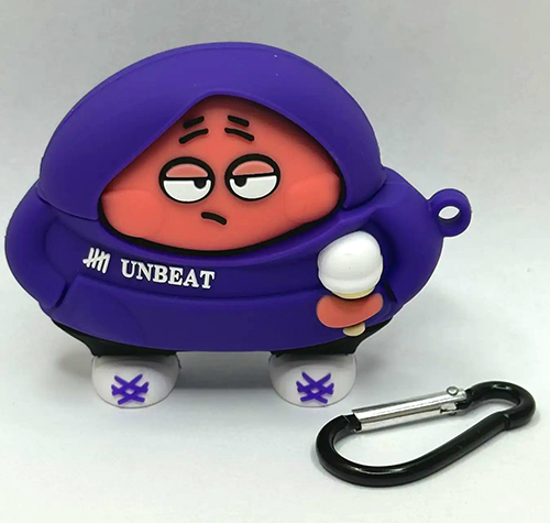 Силиконовый чехол для Air Pods 4 фигурный, утолщенный, с карабином, Патрик в фиолетовой толстовке