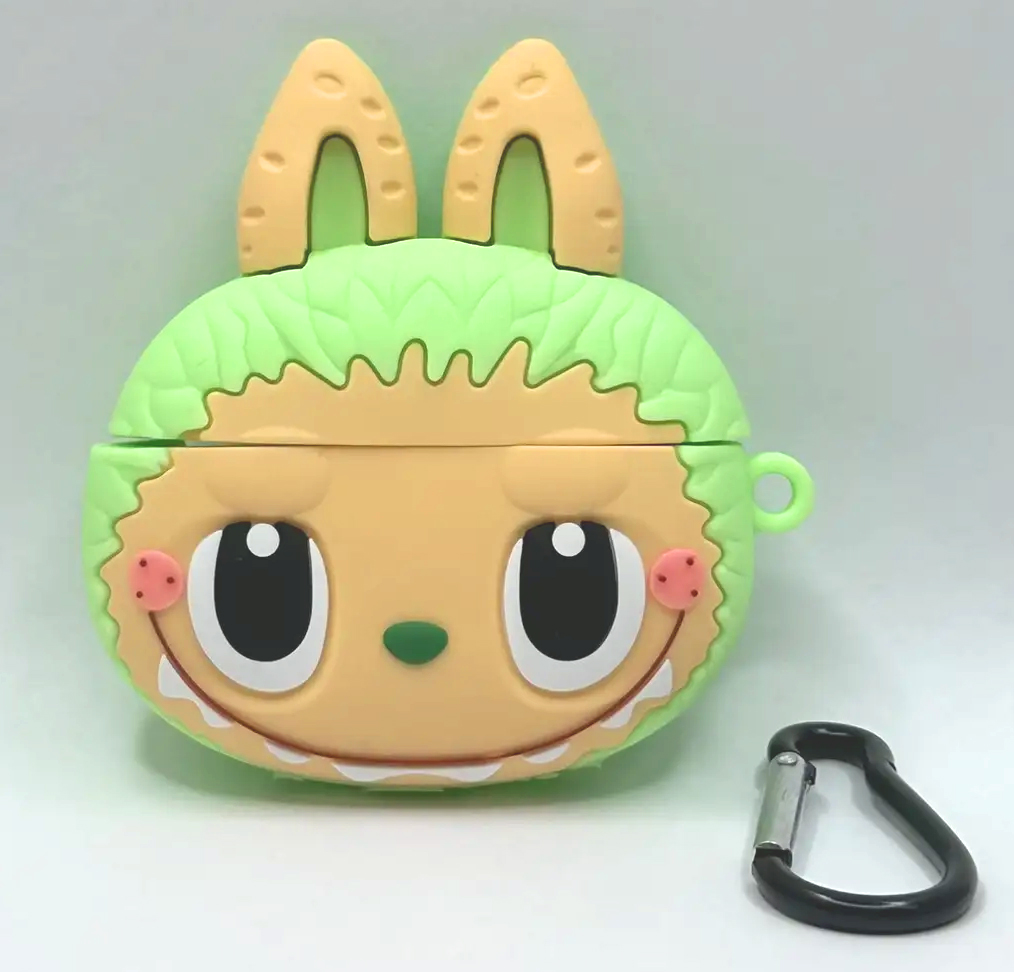 Силиконовый чехол для Air Pods 4 LAB фигурный, утолщенный, с карабином, салатовый