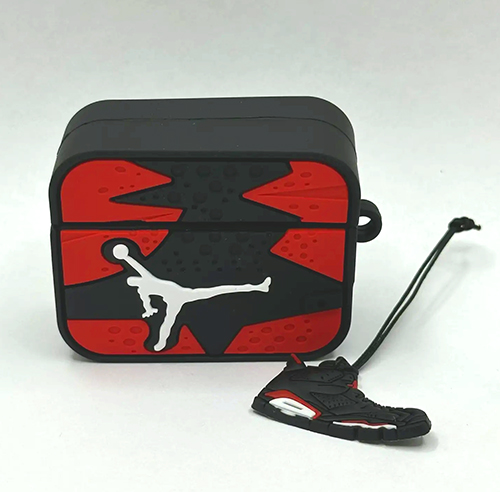 Силиконовый чехол для Air Pods 4 фигурный, утолщенный, баскетболист на красно-черном фоне