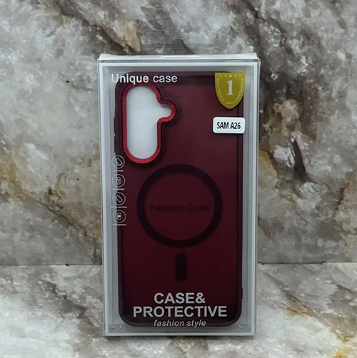 Задняя крышка UNIQUE CASE Samsung Galaxy A26 матово-прозрачная с MagSafe, металл. окантовка камеры и кнопки, в коробке, бордовая