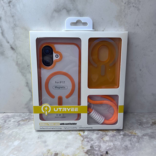 Задняя крыша Iphone 17 Air с MagSafe + картхолдером и шнурком, оранжевая